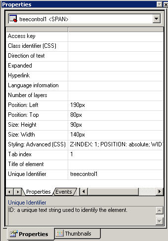 Click a property to display a description of the selected property at the bottom of the Properties window. Most of these properties adhere to W3C standards. For more information on W3C object properties, see the W3C Web site.