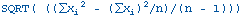 The standard deviation of data points xi, where i is from 1 to n is: