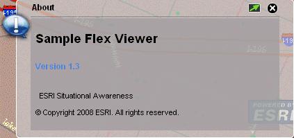 Clicking About opens the following About dialog in the WebFOCUS GIS Flex Viewer: