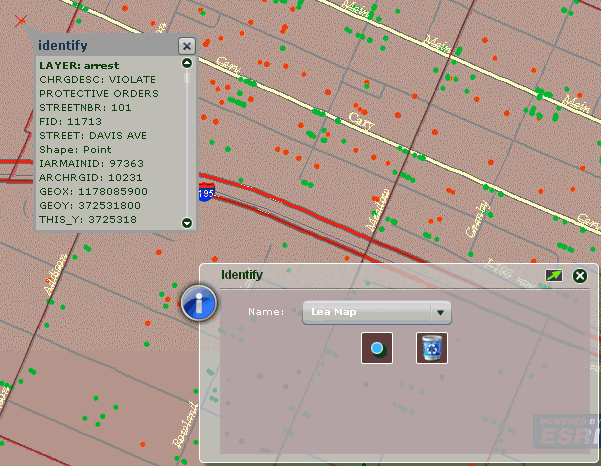 The Identify dialog allows you to display more information (for example, type of crime) for a specific point on the map.