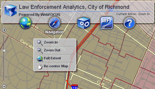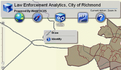 Clicking Zoom In switches the map pointer (selection tool) to zoom in mode.