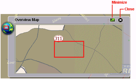 When you zoom in to a specific area on the map, the Overview Map dialog shows a mini full extent view of the map with the zoomed in area highlighted.