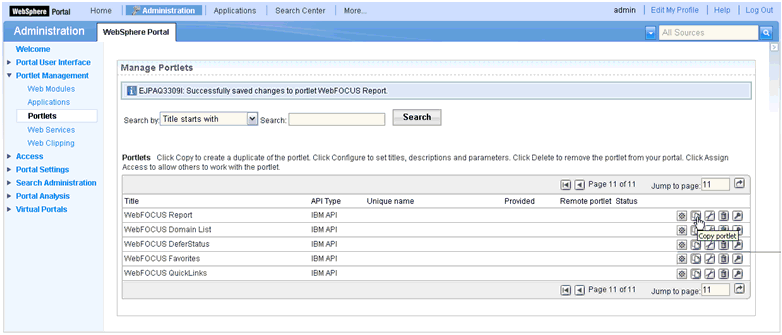 To copy a WebFOCUS Portlet:
