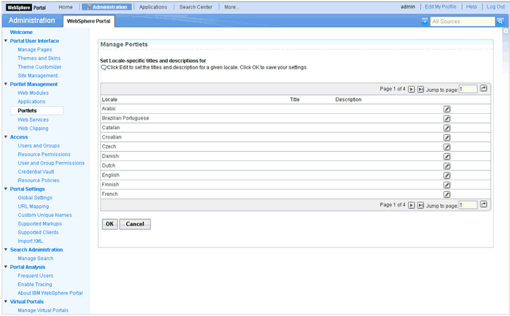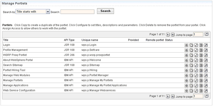 The portlet management page opens.