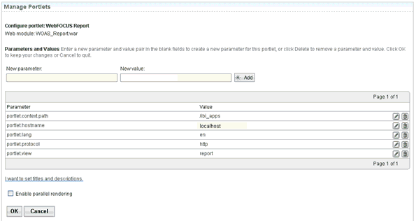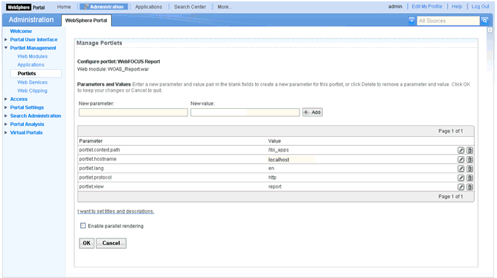 To modify WebFOCUS Portlet parameters and values: