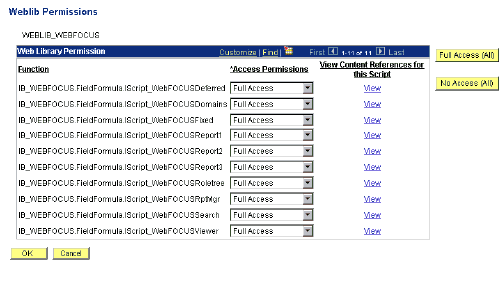 Once iScript has been made available through the Application Designer, permissions must be set for the Web Library so that PeopleSoft users have access to it.