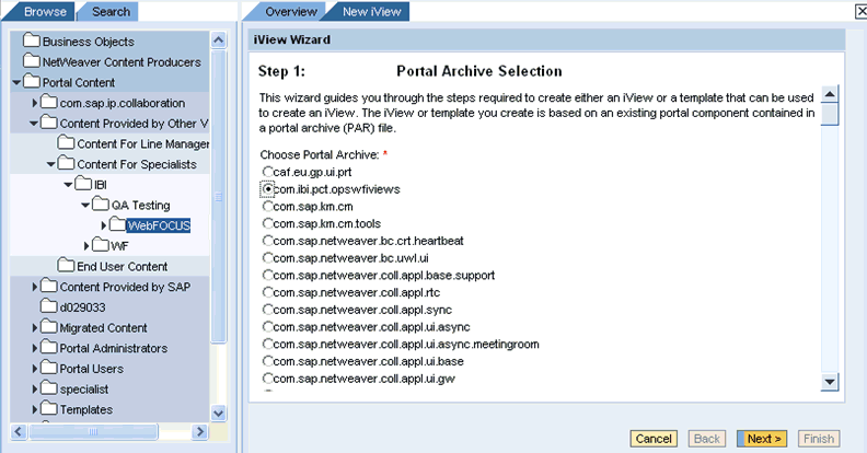 5. Select the .PAR file that was previously imported (com.ibi.pct.opswfiviews) and click Next.