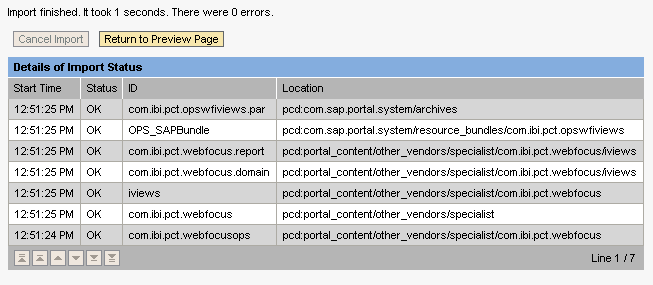 Once the WEBFOCUSOPS.EPA file is imported, a status summary is provided, which also indicates any errors that were encountered.