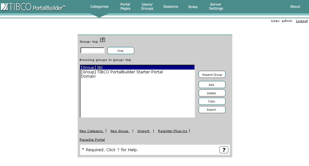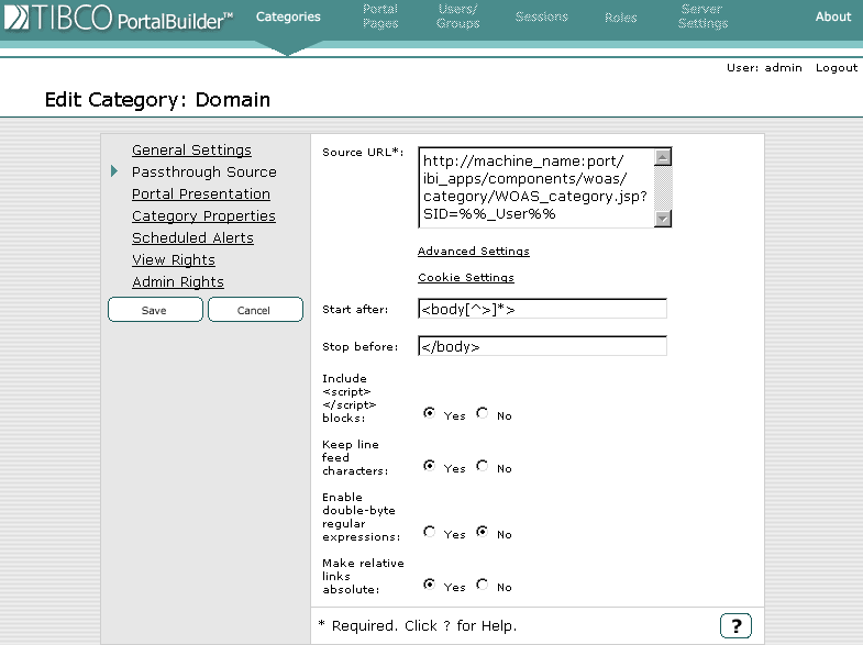 The following section describes how to access the TIBCO PortalBuilder Administration Tool, which will allow you to publish WebFOCUS Categories. The PortalBuilder must be hosted on a system that has a fully qualified machine name.
