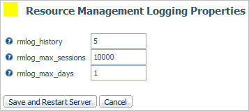 The Resource Management Logging Properties window opens, as shown in the following image.