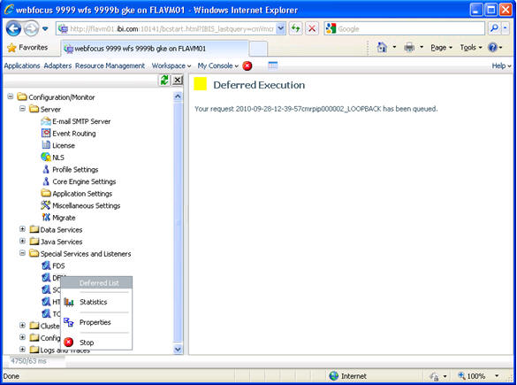 To view the progress of the Deferred request, expand the Special Services and Listeners folder to see a list of the various special services and listeners.