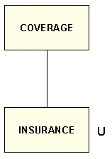 The diagram below depicts the server representation of the diagram in Set-Based Relationships that uses the CALC field method. The server interprets COVERAGE as the parent segment and INSURANCE-PLAN as the descendant. Since the DUPLICATES parameter is set to N (CLCDUP=N), the INSURANCE segment is unique.
