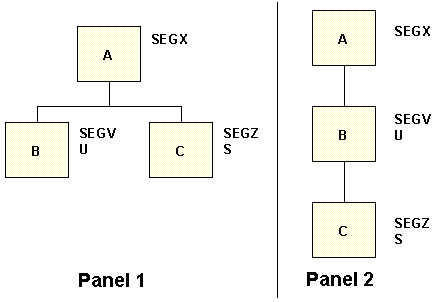 As this request is executed, record occurrences multiply. Every record of segment C is paired with every record in segment B. If, for example, A had two B descendants and four C descendants, the report would contain eight lines of output. This effect is advantageous when it is necessary to pair every record associated with one linkpath to a record associated with another linkpath. Record pairing may produce undesirable results when the inverted segments are not directly related to each other.