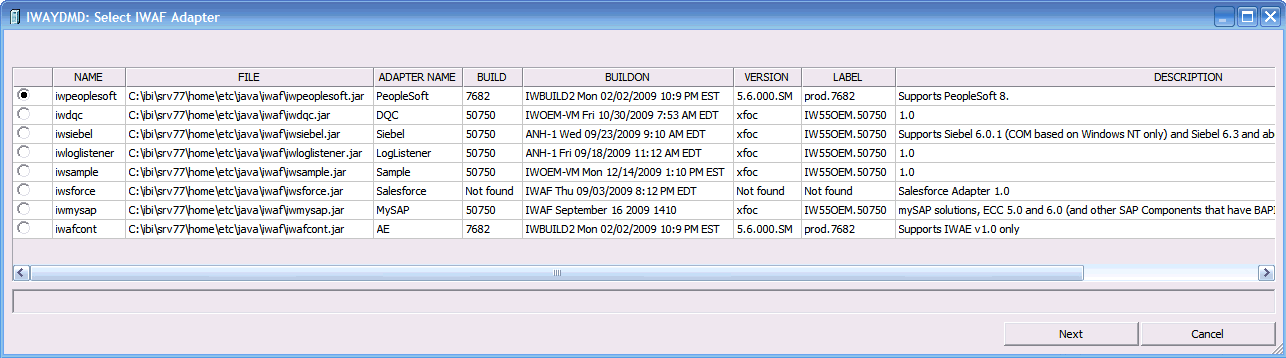 For an explanation of the information in the adapters list, see IWAF Adapter Information.