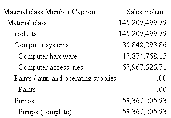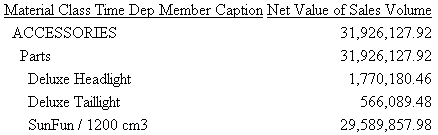 ENGINE BWBAPI SET KEY_DATE 20081031 TABLE FILE TIMEDEP SUM NET_VALUE_OF_SALES_VOLUME BY MATERIAL_CLASS_TIME_DEP_CAPTION HIERARCHY SHOW TO DOWN 3 ON TABLE SET PAGE NOPAGE ON TABLE SET STYLE * GRID=OFF, $ END