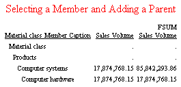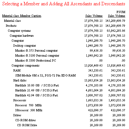 Hierarchical Context. The set of members selected for the report using a WHEN test is augmented so that every member of the hierarchy is shown within its hierarchical context. The displayed subtree of hierarchy members is a contiguous tree whose root is the root of the whole hierarchy. The added context members are shown without totals.