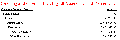 If selected members do not have common ancestors, the adapter creates one by applying function AGGREGATE to the ancestors of the selected members on the topmost level of the hierarchy. This aggregate value is then displayed on the report output.