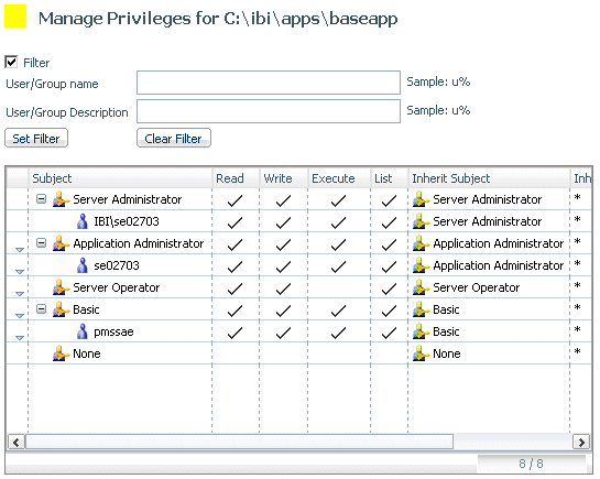 If you check the Filter check box, you can filter which users or groups show on the pane.