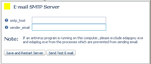 Enter the sender e-mail address that appears in the 'From' field in e-mails. Note: If e-mail send operations fail, verify that the smtp host is active and/or that a virus scanner is not blocking edachkup. |