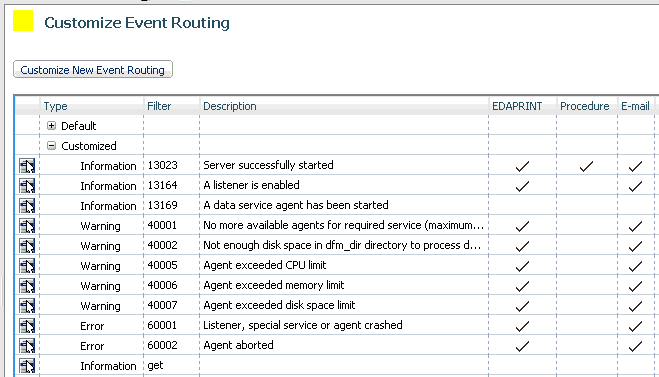 Event Routing allows you to launch procedures or send e-mail based on different server events (agent or listener crashes, server configuration errors, disk space limitations, and others). All events are classified by type as information, warning, or error. These can be pre-defined or custom-defined events.