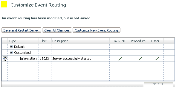 The Customize Event Routing page shows the Default and Customized Event Routing.