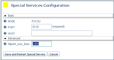 The Special Services Configuration page opens.