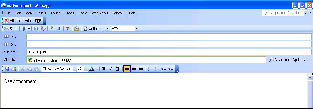 If Microsoft Outlook is not your default e-mail system, save the active report as an HTML document and attach the file to your e-mail message.