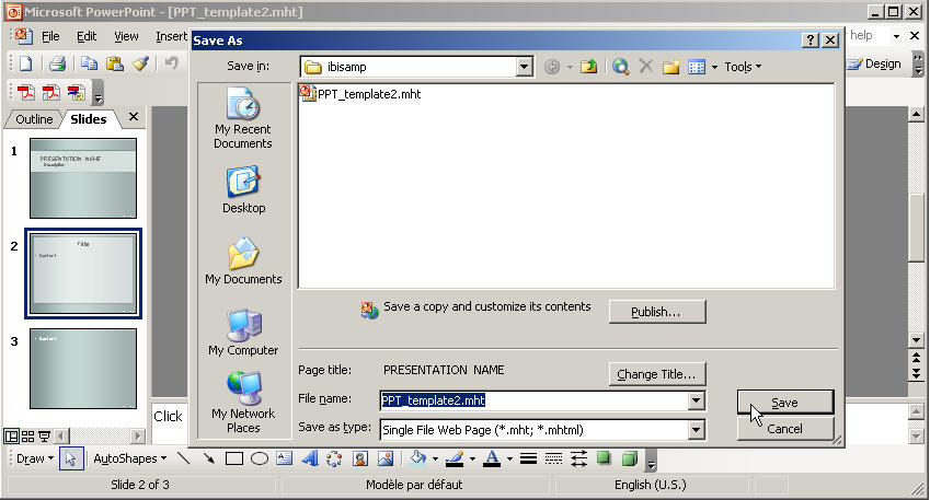 1. Save the pre-existing third-party PowerPoint template in Microsoft Office Web Archive or Single File Web Page (.mht) format in a WebFOCUS Reporting Server application directory as shown in the image below.