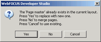 Click Cancel to use the existing Page Master and ignore the Page Master from the Page Layout template.