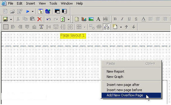 In general, each report appears once for each page layout and continues until the data is complete. The new overflow page option enables you to specify reports or graphs that should repeat on each subsequent page to create different headers or footers.