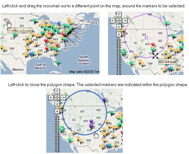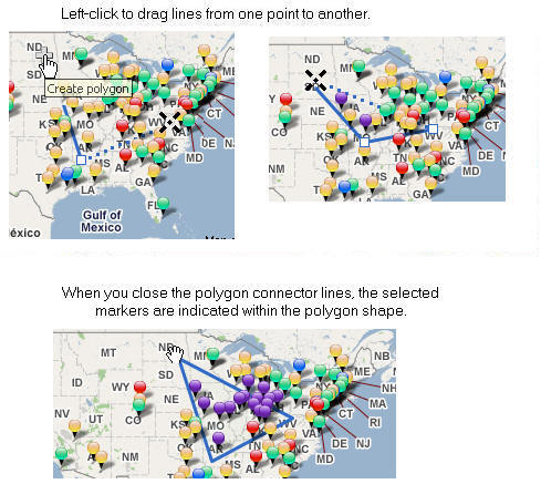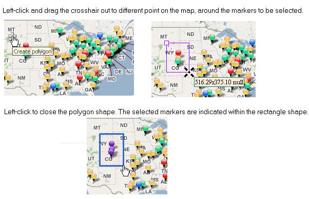 Note: The method by which selections are made depends on the selector shape used. For details, see How to Create Polygons in the Google Maps Output.