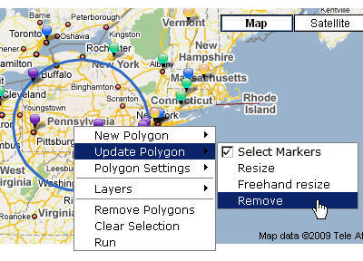 Tip: The shape selection options are available from the right-click context menu on the Google Map. You may also customize these options from the Advanced tab of the Map Properties dialog box.