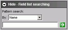The following image shows the Field list searching dialog box. It contains a drop-down list for what pattern you want to search by, a text box, and a submit button.