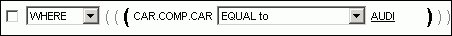 After you click OK, the value, Audi, appears in the Where statement which reads CAR.COMP.CAR EQUAL to AUDI.