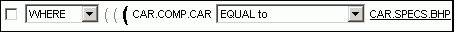 After you click OK, the field BHP appears in the Where statement which reads CAR.COMP.CAR EQUAL to CAR.SPECS.BHP.