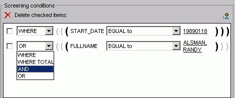 3. Use the drop-down list to select from AND, OR, WHERE, and WHERE TOTAL.