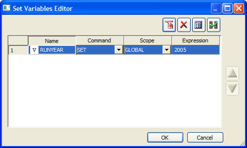The Set Variables Editor now displays the details for the parameter, as shown in the following image.
