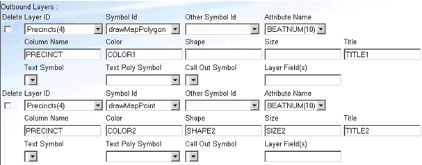 Using the definition editor, create the configuration for the FOCEXEC with duplicate outbound layer definitions. Specify a different SYMBOLID for each of the layer definitions.