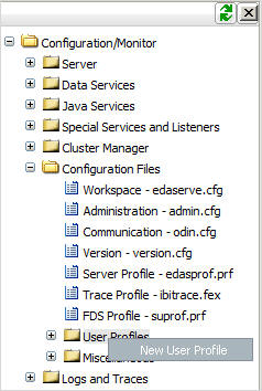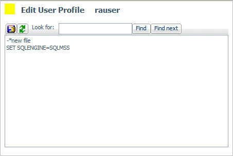 The Edit User Profile window appears, displaying the name of the new profile. In the example shown in the following image, the profile name is rauser.