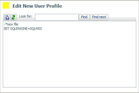 A window appears in the right pane in which you will type the commands for the profile, as shown in the following image.