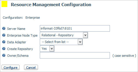The Resource Management Configuration window opens, as shown in the following image.