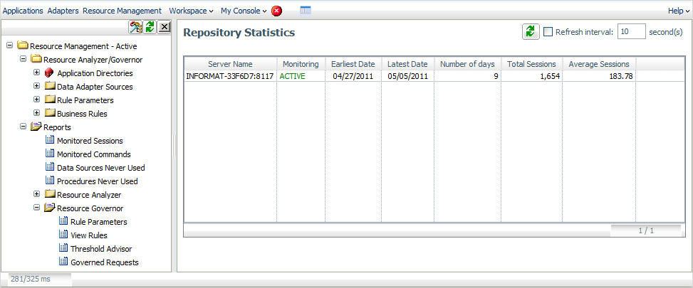 The Resource Management option on the Web Console lets you implement Resource Governor administration, including usage monitoring, data deletion, rule parameter selection, and rule building, as shown in the following image.