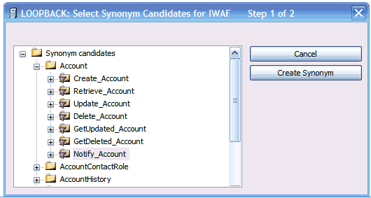 The select synonym candidate for IWAF screen opens.