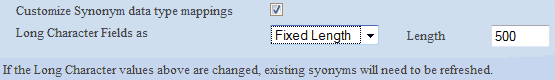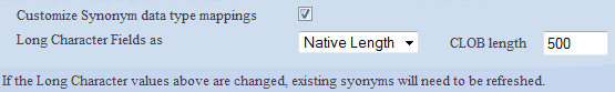 This option specifies how Long Character and CLOB data types in the PeopleSoft table should be reflected in the synonym.