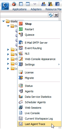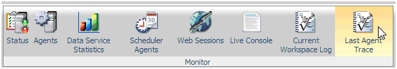 You can also access the last agent trace by selecting Last Agent Trace from the Monitor section of the ribbon, as shown in the following image.