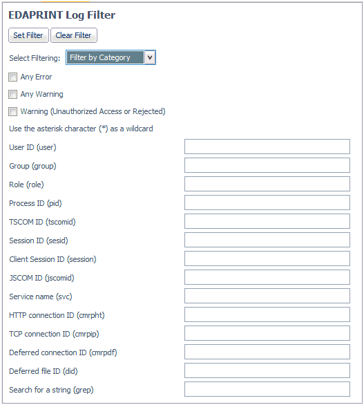 The EDAPRINT Log Filter page opens.